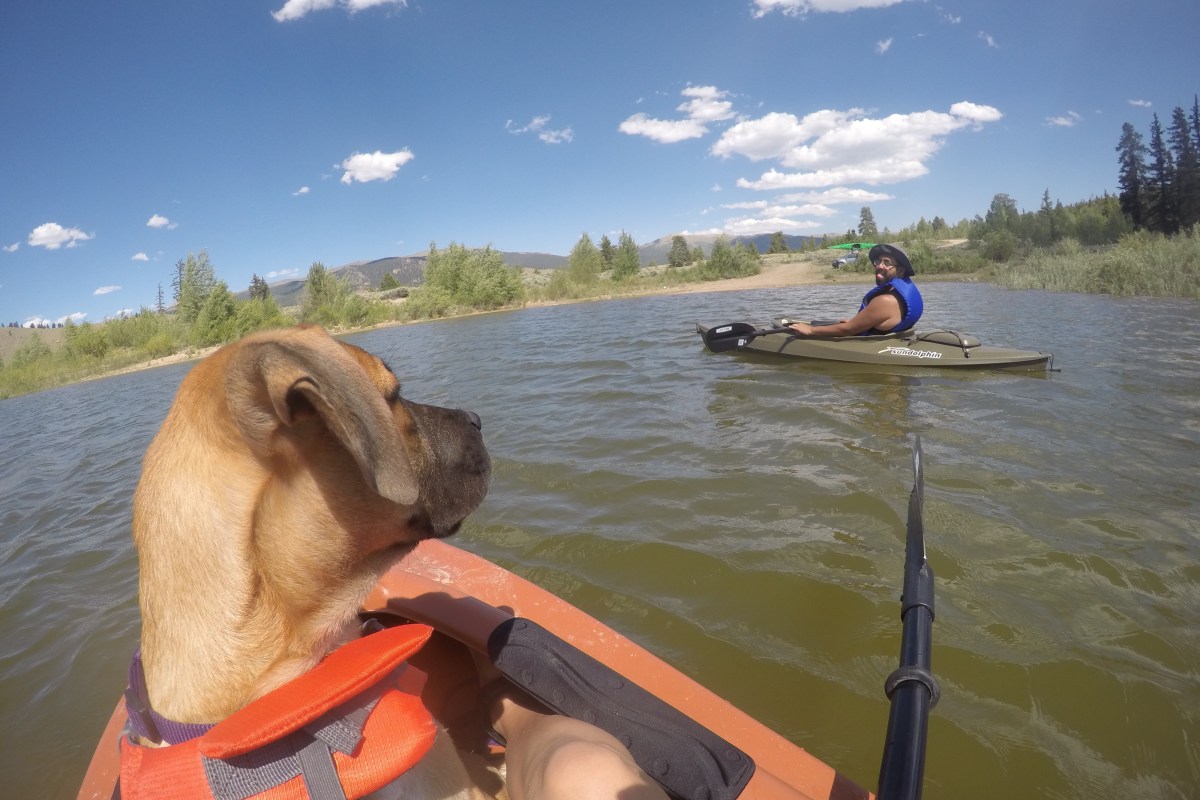 On day 3 of our adventure in the Colorado mountains, we finally had a chance to take out our kayaks. But what to do with the pup?! Take her with us, of course.