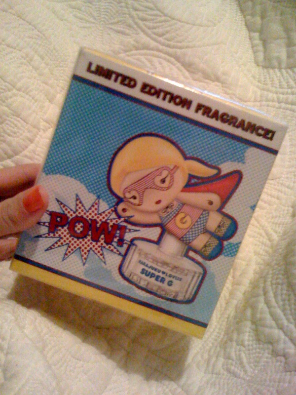 My mom knows me better than anyone and makes me laugh all the time. Last week, she sent me an early Valentine’s Day present that is 100% me. This little bottle of perfume from the Harajuku Lovers is hilarious. I laughed when I opened it because I knew my mom was trying to cheer me up. She’s good like that! When my dad lived in Japan, I picked up a habit of loving all things Japanese, and have a super soft spot for Hello Kitty and Japanese packaging. And superheroes named Super G? That are blonde and wear glasses? Yep, this is one of my alter-egos in a jar. My mom lives far away but she knows how to make me smile and always reminds me that she is never too far away.